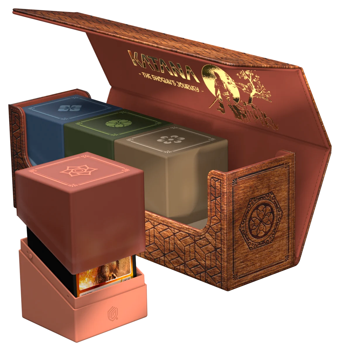 The Arkhive 400+ Xenoskin from Ultimate Guard's "Katana: The Shogun's Journey" series is the perfect mass storage box for storing and carrying multiple deck boxes and/or large numbers of cards from games such as Magic: The Gathering, Pokémon, Lorcana, Flesh and Blood, Yu-Gi-Oh!, and One Piece. A durable Xenoskin case, high-quality microfiber inner lining, and strong magnetic closure ensure excellent protection for up to 450 double-sleeved cards in Ultimate Guard sleeves* or four Boulder 100+ deck boxes.