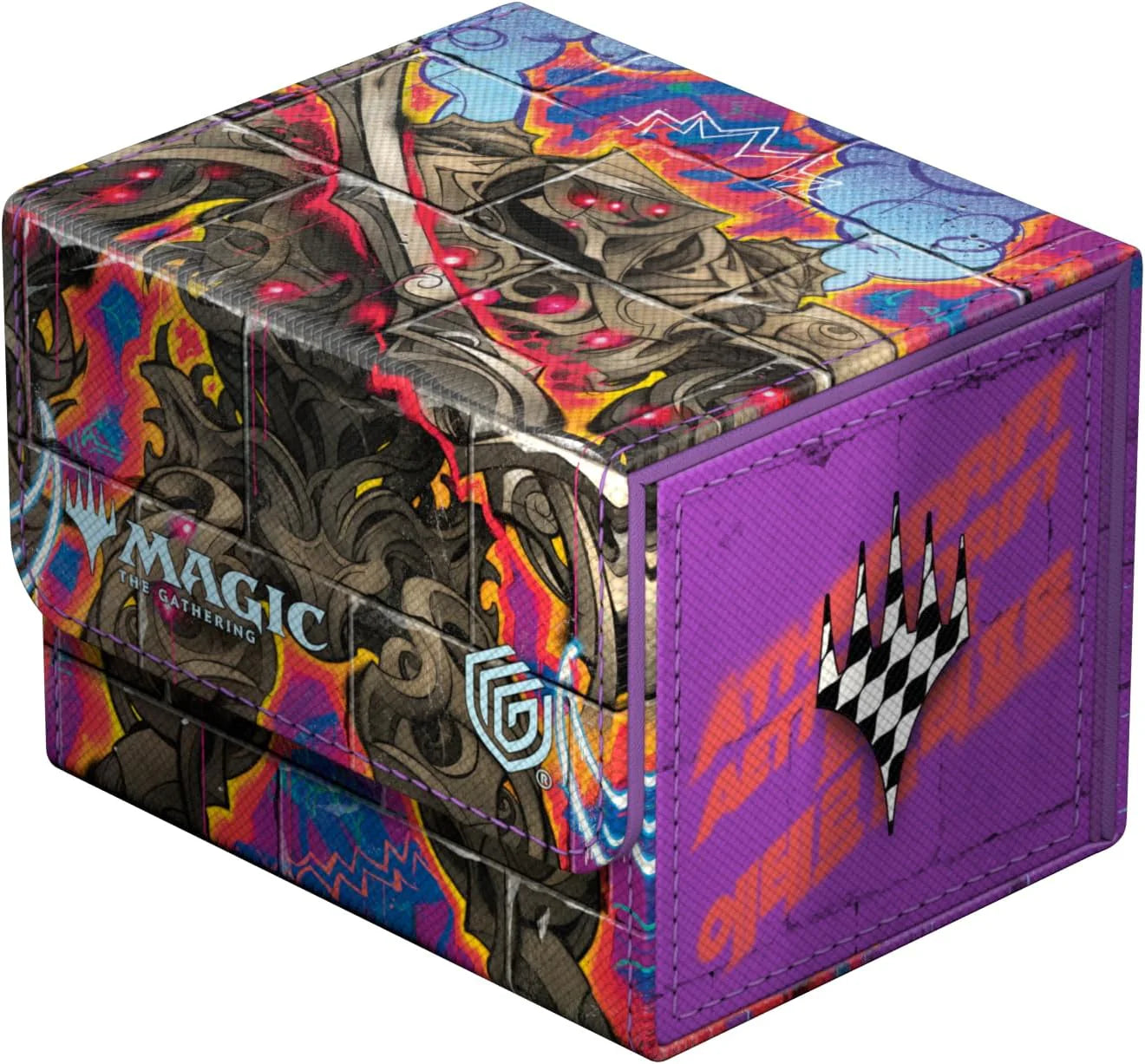 The Sidewinder 100+, made of durable Xenoskin material, holds up to 100 (double-sleeved) or 120 (single-sleeved) cards and is the perfect deck box for Commander/EDH decks. Printed in full color with officially licensed artworks from Magic: The Gathering's Aetherdrift, Ultimate Guard's Sidewinder deck boxes with their strong magnetic closure and quality microfiber inner lining are a safe and reliable storage place for MTG decks and individual trading cards.
